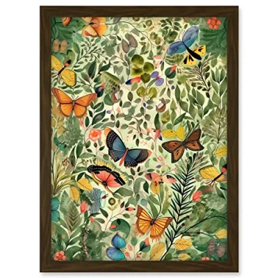 Artery8 Butterflies Flying in Spring Field Modern Folk Art Artwork Framed A3 Wall Print