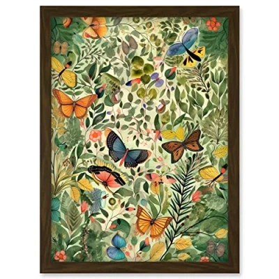 Artery8 Butterflies Flying in Spring Field Modern Folk Art Artwork Framed Wall Print A4