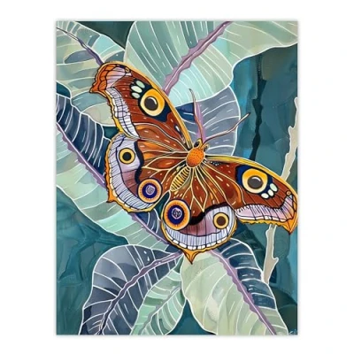 Artery8 Butterfly on Palm Leaf Painting Tropical Exotic Living Room Large Wall Art Poster Print Thick Paper 18X24 Inch