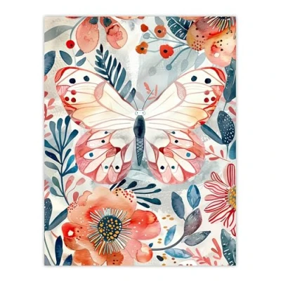 Artery8 Butterfly Red Blue Floral Watercolour Folk Art Kids Bedroom Nursery Extra Large XL Wall Poster Print