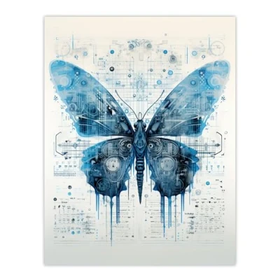 Artery8 Butterfly Robot Hybrid Secret Military Schematic Blueprint Futuristic Complex Arcane Manuscript Gift For Him Man Cave Extra Large XL Wall Art Poster Print