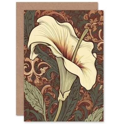 Artery8 Cala Lily Flower Art Nouveau William Morris Style for Wife Her Mum Sister Daughter Mom Gran Nan Birthday Thank You Congratulations Blank Greeting Card