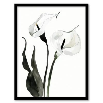 Artery8 Calla Lily Flower Black White Watercolour Lilies Living Room Artwork Framed Wall Art Print A4