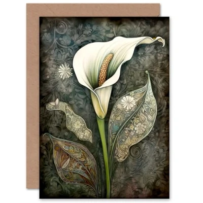 Artery8 Calla Lily Flower Bloom Batik for Wife Her Mum Sister Daughter Mom Gran Nan Birthday Thank You Congratulations Blank Art Greeting Card
