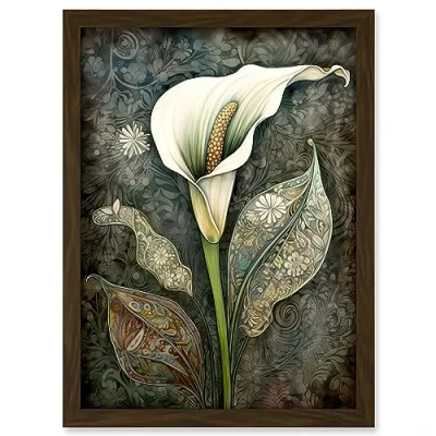 Artery8 Calla Lily Flower Bloom with Batik Style Patterns Artwork Framed A3 Wall Art Print