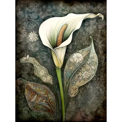 Artery8 Calla Lily Flower Bloom with Batik Style Patterns Large Wall Art Poster Print Thick Paper 18X24 Inch
