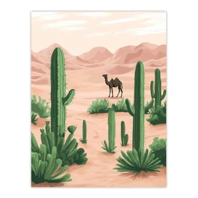 Artery8 Camel in Pastel Pink Desert Sand Dunes and Cacti Living Room Large Wall Art Poster Print Thick Paper 18X24 Inch