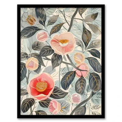 Artery8 Camellia Blooming Flowers Botanical Painting Living Room Artwork Framed Wall Art Print A4