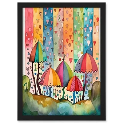 Artery8 Candy Land Rain Rainbow Folk Art Artwork Framed A3 Wall Print