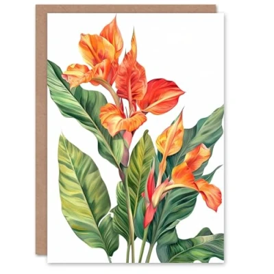 Artery8 Canna Lily Flower Bright Botanical Painting Greeting Birthday Card Him Her All Blank