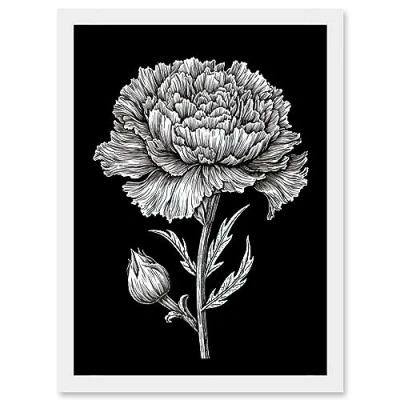 Artery8 Carnation Flower Black and White Linocut Print Artwork Framed A3 Wall Art