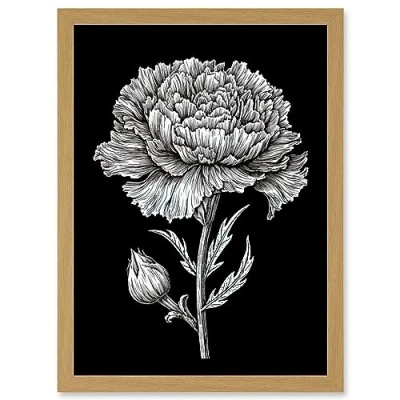 Artery8 Carnation Flower Black and White Linocut Print Artwork Framed A3 Wall Art