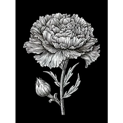 Artery8 Carnation Flower Black and White Linocut Print Extra Large XL Wall Art Poster