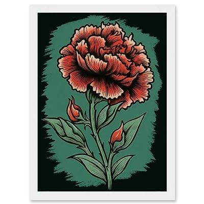 Artery8 Carnation Flower Old School Tattoo Ink Body Art Rockabilly Americana 50s Artwork Framed A3 Wall Print