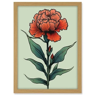 Artery8 Carnation Old School Flower Tattoo Ink Body Art Rockabilly Americana 50s Artwork Framed A3 Wall Print