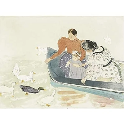Artery8 Cassatt Feeding Ducks Painting Art Print Canvas Premium Wall Decor Poster Mural