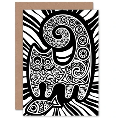Artery8 Cat and Fish Folk Art for Wife Her Mum Sister Daughter Mom Gran Nan Birthday Thank You Congratulations Blank Greeting Card