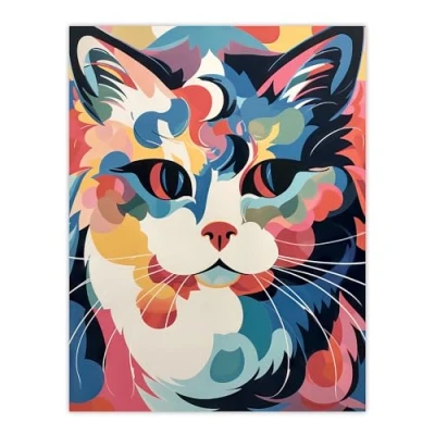 Artery8 Cat Graphic 1960s Abstract Painting Pastel Colour Retro Boho Animal Portrait Extra Large XL Wall Art Poster Print