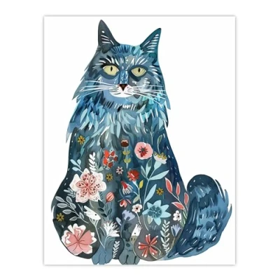 Artery8 Cat Lover Blue Maine Coon with Flower Pattern Fur Living Room Large Wall Art Poster Print Thick Paper 18X24 Inch