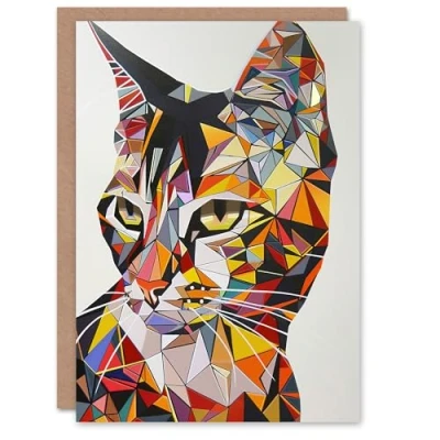 Artery8 Cat Lover Colourful Polygonal Geometric Portrait Greeting Birthday Card Him Her All Blank