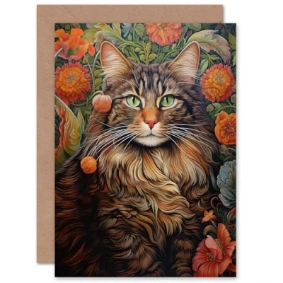 Artery8 Cat Lover Floral Spring Garden Flower Blooms for Wife Her Mum Sister Daughter Mom Gran Nan Mothers Day Birthday Thank You Blank Art Greeting Card