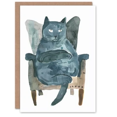 Artery8 Cat Lover Grumpy Pet Waiting On Armchair Blank For Him Or Her Art Birthday Card