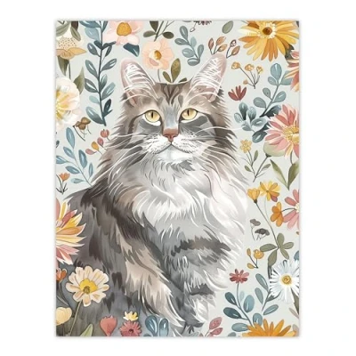 Artery8 Cat Lover Maine Coon Boho Floral Pet Portrait Living Room Extra Large XL Wall Art Poster Print