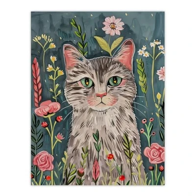 Artery8 Cat Lover Pet Portrait Night Time Flower Garden Living Room Extra Large XL Wall Art Poster Print