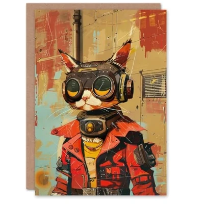 Artery8 Cat Lover Sci Fi Space Tabby Race Atompunk Animal Blank For Him Or Her Art Birthday Card