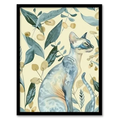 Artery8 Cat Lover Teal Tan Oriental Shorthair Portrait Living Room Artwork Framed Wall Art Print A4
