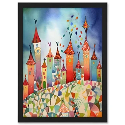 Artery8 Celebration Day Cityscape Processional Street Folk Art Watercolour Painting Artwork Framed A3 Wall Print