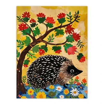 Artery8 Charming Hedgehog Under Tree Flowers Folk Art Kids Bedroom Extra Large XL Wall Poster Print