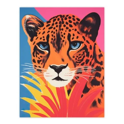 Artery8 Cheetah And Pineapple Modern Screen Print Risograph Blue Pink Orange Artwork Painting Extra Large XL Wall Art Poster