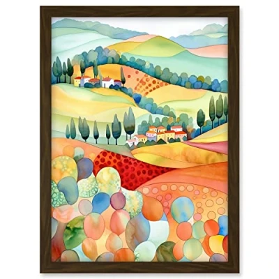 Artery8 Chianti Italy Rolling Hills Folk Art Artwork Framed A3 Wall Print