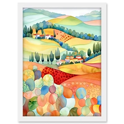 Artery8 Chianti Italy Rolling Hills Folk Art Artwork Framed A3 Wall Print