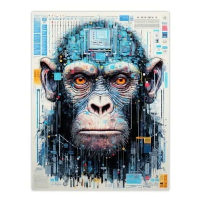 Artery8 Chimpanzee Robot Hybrid Schematic Blueprint Futuristic Secret Complex Arcane Manuscript Gift For Him Man Cave Large Wall Art Poster Print Thick Paper 18X24 Inch