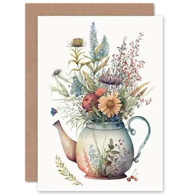 Artery8 China Teapot Flower Vase for Wife Her Mum Sister Daughter Mom Gran Nan Birthday Thank You Mothers Day Blank Art Greeting Card