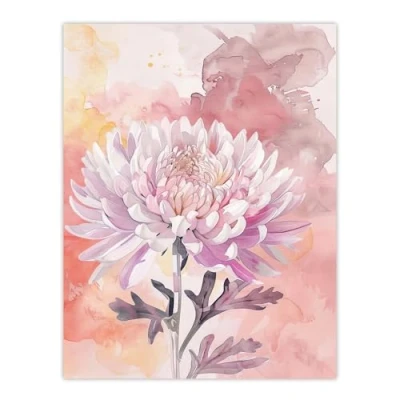 Artery8 Chrysanthemum Flower Watercolour Pastel Soft Living Room Extra Large XL Wall Art Poster Print