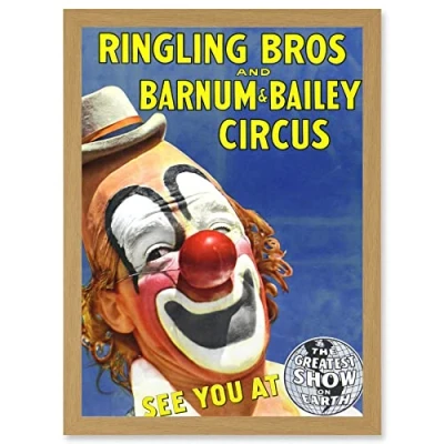 Artery8 Circus Ringling Bros Barnum Bailey Show Clown A4 Artwork Framed Wall Art Print