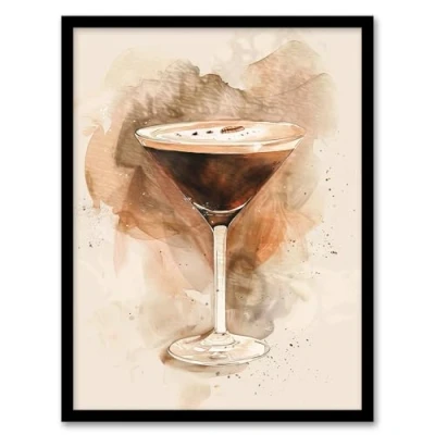 Artery8 Classic Espresso Martini Cocktail Watercolour Kitchen Artwork Framed Wall Art Print A4