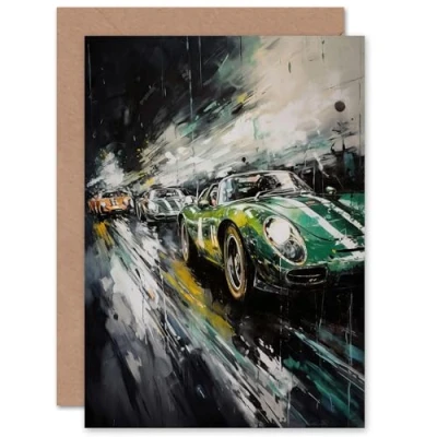 Artery8 Classic Racing Cars Night Scene British Green Motorsport for Husband Him Dad Son Brother Birthday Thank You Congratulations Blank Art Greeting Card
