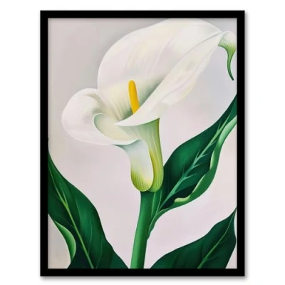 Artery8 Classic White Lily Painting Modern Single Flower Living Room Artwork Framed Wall Art Print A4