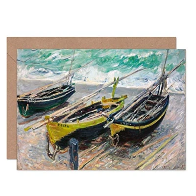 Artery8 Claude Monet Three Fishing Boats Fine Art Greeting Card Plus Envelope Blank Inside