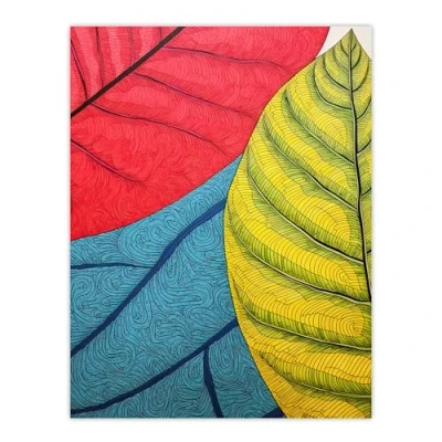 Artery8 Close Up Leaves Gond Painting Style Artwork Red Blue Green Line Drawing Stylised Patterns Extra Large XL Wall Art Poster Print