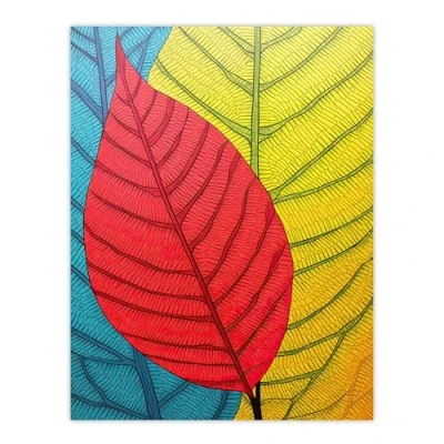 Artery8 Close Up Leaves Gond Painting Style Artwork Red Blue Yellow Line Drawing Stylised Patterns Extra Large XL Wall Art Poster Print