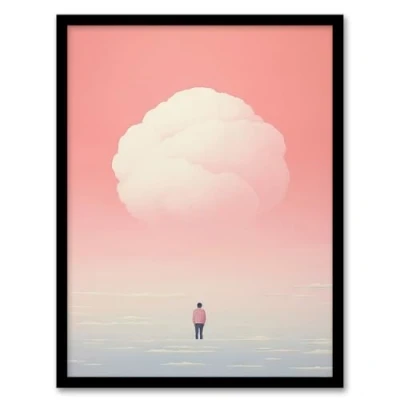 Artery8 Clouded Thoughts By Amy Denver Minimalist Soft Pastel Pink Peach Minimalism Simple Modern Artwork Framed Wall Art Print A4