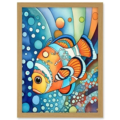 Artery8 Clownfish Colourful Folk Art Watercolour Painting Artwork Framed A3 Wall Print