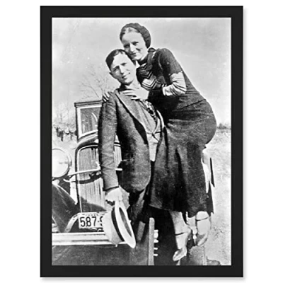 Artery8 Clyde Barrow Gang Bonnie Parker Outlaw Criminal Photo Artwork Framed Wall Art Print A4