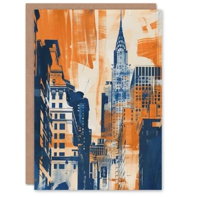 Artery8 Cobalt Blue Cream Orange Cityscape Painting Greeting Birthday Card Him Her All Blank