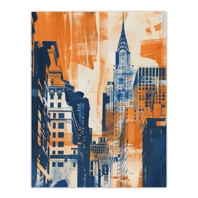 Artery8 Cobalt Blue Cream Orange Cityscape Painting Living Room Large Wall Art Poster Print Thick Paper 18X24 Inch